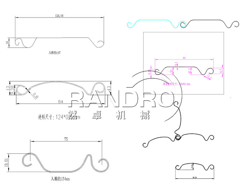 Below are some design drawings for roller shutter roll forming machines, including roller shutters of various specifications, roller shutter guide rails, and metal louvers. Due to limited display space, please contact us for more drawing information.