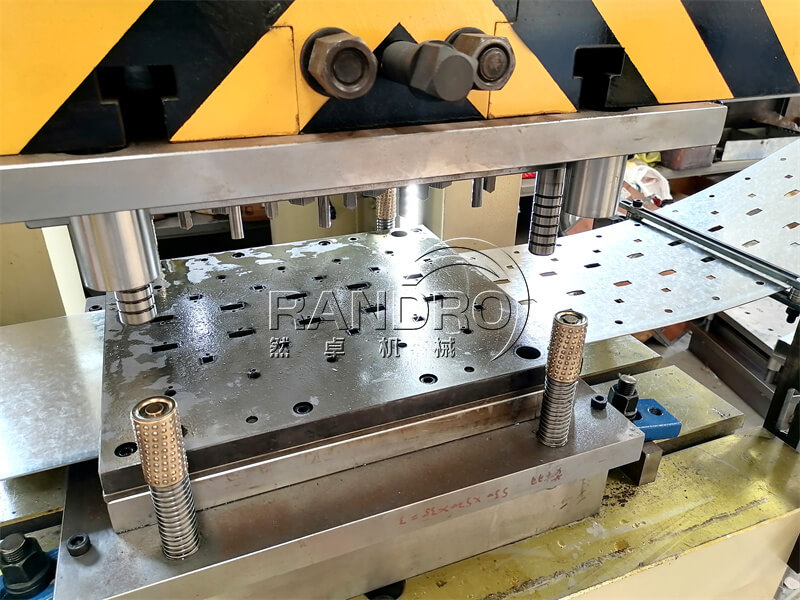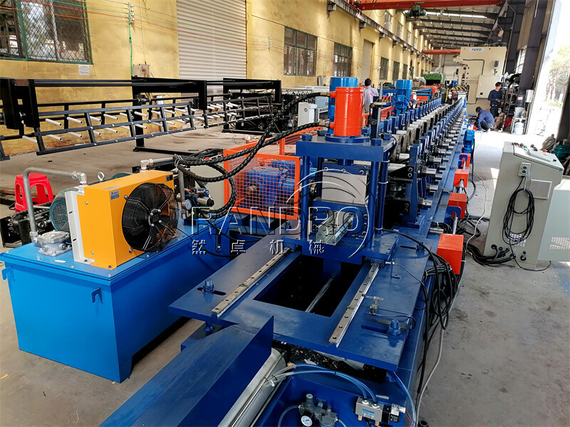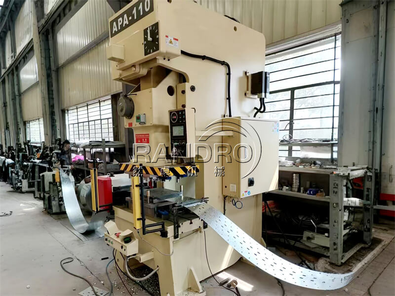 The upright shelving pillar rack forming machine is paired with a well-known brand Yangli punching machine (100t), ensuring reliable machine performance and excellent punching results, eliminating your concerns during the punching process. The coil material is fed through an uncoiler, straightened by a leveling device, then punched by the punching machine, and then enters the roll forming machine for roll forming. Finally, it undergoes hydraulic shearing to complete the entire production process.