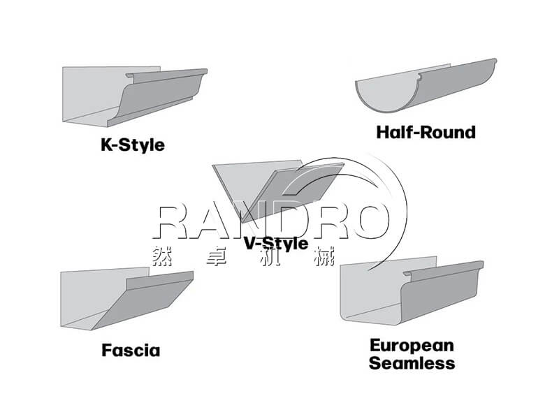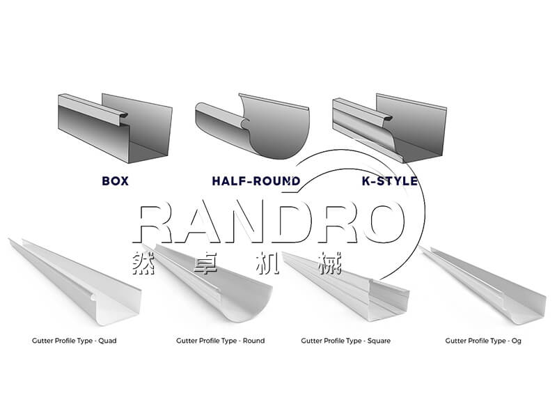Regarding rain gutter roll forming machines, Randro factory can customize various shapes. Below are some popular design patterns currently on the market. We can customize rain gutter making machine for you according to different roll types. Please contact us for details.