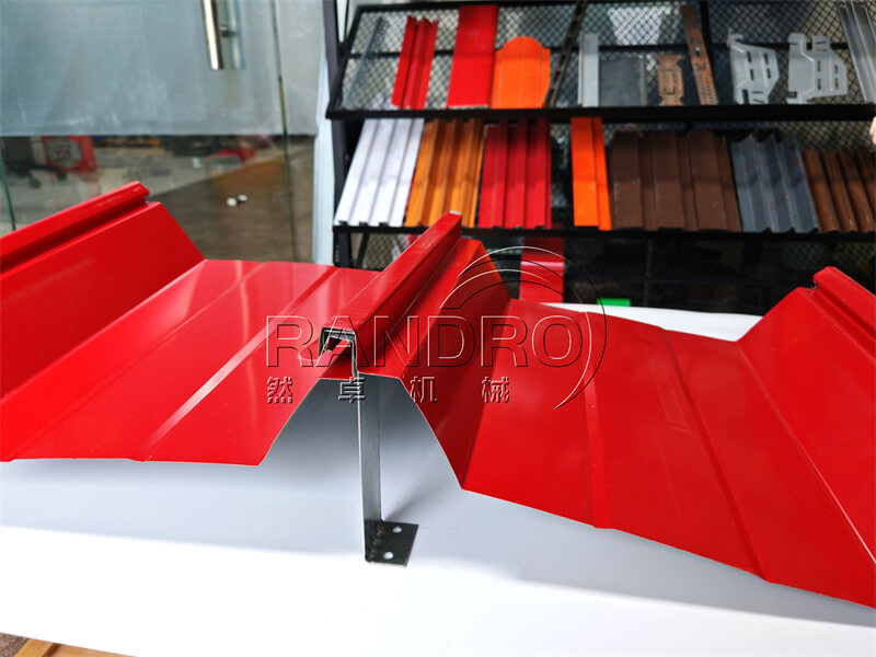 The finished product of the 720 standing seam self-lock roof panel machine is shown in the picture below. The finished panels are produced quickly and smoothly with no burrs on the surface. At the same time, it can be used with corresponding roof clips for support, thereby completing the construction of the entire roof panel system. Randro factory can provide 720mm standing seam self-lock panel clips. If you have any needs, please feel free to contact us for relevant product information.