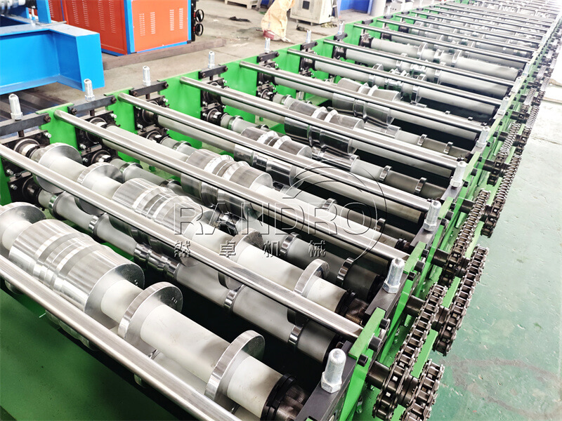 The standing seam self-locking roof panel machine is composed of high-quality main materials and components, such as a 400H steel frame, 70 solid shafts, 45# rollers, an air-cooled pump station, a Delta system, and a Lichao motor. Furthermore, this standing seam snap self-locking roof panel machine features a two-section design for easy disassembly and transportation, greatly facilitating customers.