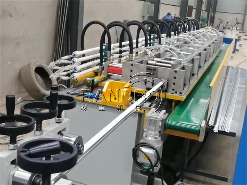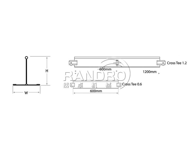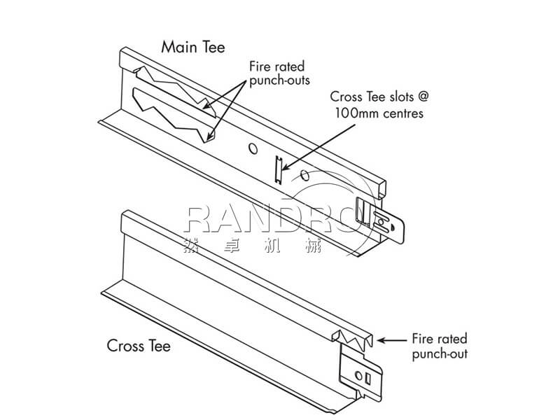The suspended T-bar purlin roll forming machine consists of a main Tee bar and cross Tee bar. The machines have the same overall shape and structure, with largely similar details, though some differences exist. The main t grid and cross t grid keels overlap to form a complete ceiling grid system. The suspended ceiling T-bar grid making machine uses high-quality components and accessories, ensuring quality and a long lifespan. Randro factory can provide a complete set of suspended ceiling t bar keel forming machines,please inquire for more details.