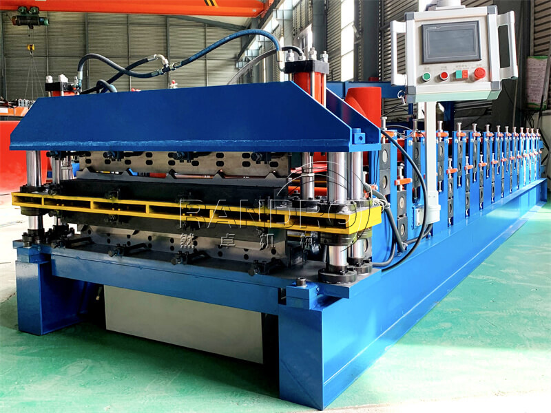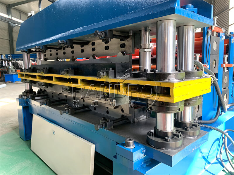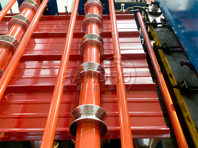 The popular South American TR4+TR5 roof panel roll forming machine is designed for double-layer roof panels. This machine can produce single-layer, double-layer, and triple-layer roof panels, with customized design and production based on each customer’s needs. The panels are seamlessly integrated into the roof, offering an aesthetically pleasing appearance, convenient drainage, good ventilation, and moisture resistance. The finished roof panels have low cost and a long service life. Furthermore, this roll forming machine can be customized to TR6, TR7, and even higher peak counts. Randro factory provides you with a one-stop solution.