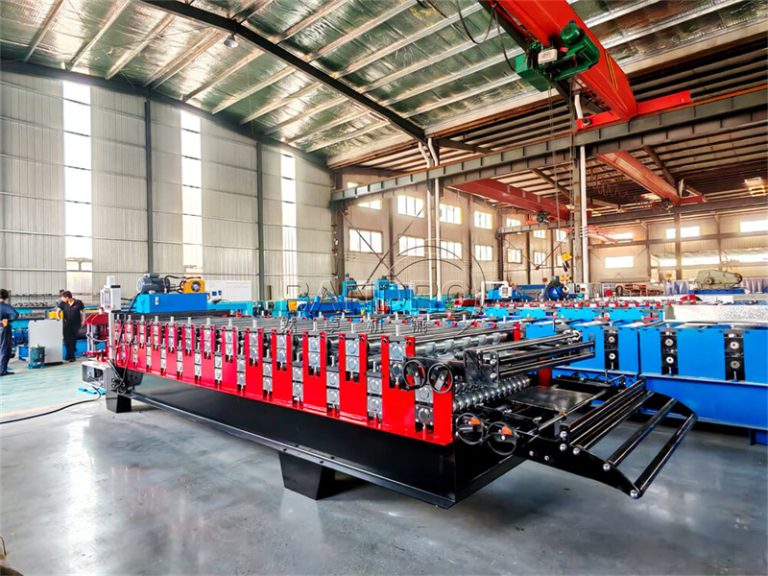 The double-layer TR6+Corrugated roof panel roll forming machine is a double-layer roll forming equipment that produces both 6-peak trapezoidal roof panels and corrugated panels. One machine can produce any two specified shapes, with thicknesses customizable from 0.2-0.6mm, and raw materials are optional. This type of roof panel roll forming machine can produce any two different shapes, such as ibr+ibr, ibr+corrugated, ibr+glazed, corrugated+glazed, etc. Compared to a single machine producing only one shape, this double-layer roof panel roll forming machine reduces the floor space required and material consumption, making it more cost-effective and better meeting overall needs.
